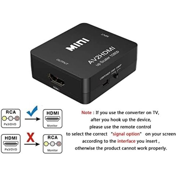 Attention: This is RCA to HDMI Converter, CAN NOT be used as HDMI to RCA/AV converter.