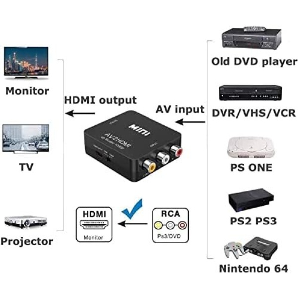 Plug and Play: Mini RCA to HDMI converter box need no extra driver, user friendly and easy to operate. Please hook up the USB power cable (included) to 5V 1A power adapterwhen using this RCA to HDMI adapter.