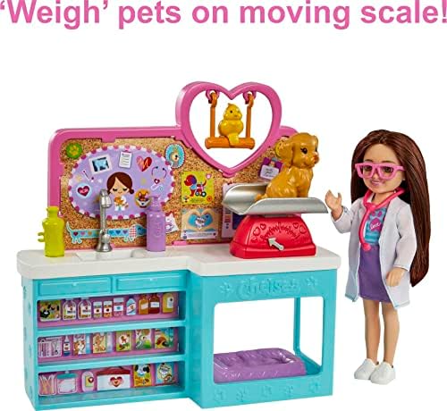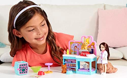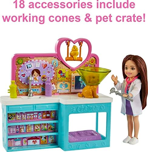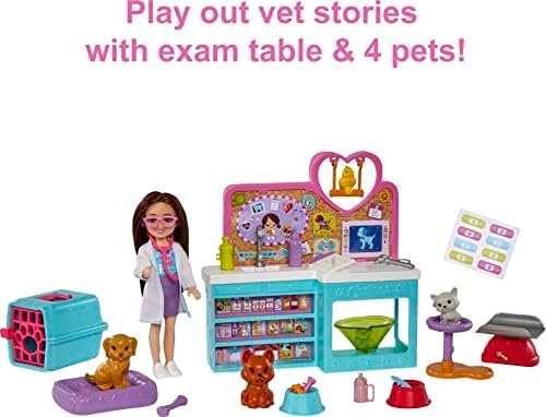 Barbie Chelsea Can Be Doll & Accessories, Pet Vet Playset with Brunette Small Doll, 4 Animals & 18 Pieces