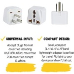 Accept plugs from all countries including UK/EU/AUS/CN, more than 200 countries (doesn’t accept plugs from S. Africa)