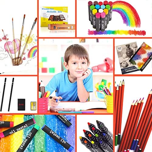 ★【The Ultimate Art Kit】This art kit is a dream come true for budding and professional artists alike. With 34 colorful pencils, 54 crayons, 42 watercolor markers, 12 oil paint, 12 watercolor paint, 12 propylene paints, 2 sketch pencils, 1 eraser, 1 sharpener, 4 brushes, and 1 sketch pad, this set has everything you need to create beautiful art. All of the supplies are neatly organized in a gorgeous wooden case, making it the perfect gift for kids, teenagers, and anyone who loves art.