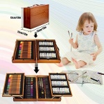 ★This Art Kit is absolutely amazing and comes fully loaded with everything that a new artist might need. It has 174 pieces includes 54 oil pastels, 42 watercolour pens, 34 pencil crayons, 12 oil paints, 12 propylene paints, 12 watercolour paints, 4 brushes, 2 sketching pencils, an eraser and a pencil sharpener. All of the contents are neatly organized in a very fancy and well made wooden case. Art Supplies case can be reused once all the art sets are done with in many years.
