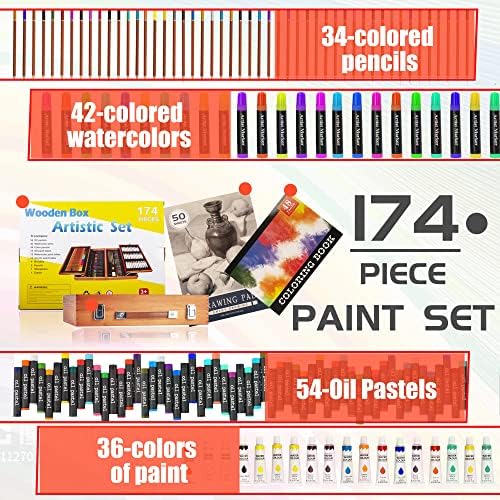 KINSPORY 174 Pack Deluxe Art Supplies,Wooden Art Set Crafts Drawing Painting Coloring Kit with Sketch Pad, Creative Genius Box for Budding & Prefession Kids Teens Adults Artists