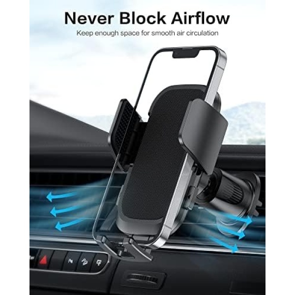 🚗Never Block Airflow: To avoid blockage of your car air vents, the phone holder car offers an extended arm, which is important for exceptional air circulation in your vehicle. As an added benefit, the holder has a phone charging port underneath.