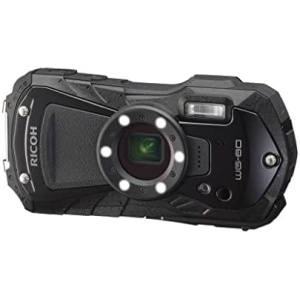 ” 1. Heavy-duty construction assuring underwater shooting down to 14 meters, for up to two hours The solid, airtight body common to the WG-80 is not only waterproof down to a depth of 14 meters for up to two hours of continuous operation (equivalent to IPX 8 or JIS Class 8), but is also shockproof against falls from a height of 1.6 meters,* dustproof (equivalent to IPX 6 or JIS Class 6), freeze-proof to temperatures as low as -10°C, and crushproof against weights up to 100kgf (kilogram force). ** Thanks to this heavy-duty construction, the cameras perform superbly and dependably even in harsh, demanding outdoor conditions. * Measured under RICOH IMAGING-original testing standards — from a height of 1.6 meters, onto a surface of 5cm-thick plywood — conforming to Method 516.5-Shock of the MIL-Standard 810F. ** Measured under RICOH IMAGING-original testing standards. 2. Exceptional image quality The WG-80 comes equipped with a back-illuminated CMOS image sensor, which assures excellent high-sensitivity and low-noise characteristics and high-speed readout of image data signals. Coupled with a high-performance imaging engine, this image sensor delivers a top sensitivity of ISO 6400 and super-high-resolution images with approximately 16.0 effective megapixels. These models also provide advanced image processing functions, made possible by the latest super-resolution technology, to assure sharp, clear, high-resolution images. They even offer such innovative features as Handheld Night Snap mode, which automatically captures several images of the same nighttime scene and produces a single, blur-free composite image from them. 3. Six Macro Lights to assist close-up shooting, with various functions Ideally positioned around the circumference of the lens barrel for macro shooting, six LED Macro Lights allow the WG-80 to provide bright, uniform illumination on a subject when the Digital Microscope mode is selected. Providing the maximum illumination intensity almost twice that of its predecessor and a five-step intensity adjustment function, this six-light unit enables the photographer to effortlessly optimize the close-range flash photography based on the subject or creative intention. In order to minimize camera shake and subject shake, the Instant Illumination Enhance function allows for the use of a higher shutter speed by automatically raising the discharge level of the Macro Lights at the moment of shutter release. The Macro Lights also provide other useful functions, such as a Self-Portrait Assist mode, which uses the blink of an LED lamp to check if the subject’s face has been safely captured within the picture frame, and the LED Lighting mode, which uses the Macro Lights as a lighting device in the dark. 4. Underwater shooting mode Specifically designed for underwater photography, the Underwater and Underwater Movie shooting modes are programmed to optimize color and contrast, based on the data of images actually captured under the water. These modes deliver sharp, true-to-life images by enhancing shades of red which are lost in underwater photography, while effectively compensating for the loss of contrast caused by the diffusion of light in water. In the Underwater mode, the Flash Off + Flash On option allows the user to consecutively capture two images with a single shutter release — one without flash and another with flash. 3 5. 5X optical zoom lens with a 28mm wide-angle coverage The WG-80 feature a high-performance, five-times optical zoom lens with a focal-length coverage from 5mm to 25mm (equivalent to approx. 28mm to 140mm in the 35mm format) to accommodate a wide range of scenes and subjects, including sweeping landscapes. They also provide other convenient shooting functions, such as a macro mode to capture dramatic close-up images from a minimum focusing distance of a mere one centimeter; an Intelligent Zoom function to extend the zoom range to approximately 36 times (equivalent to 1008mm in the 35mm format) without compromising image quality, for superior telephoto photography; and an interval shooting mode, which comes in handy for fixed-point observation. 6. Full HD movie recording for extended shooting of high-quality movies The WG-80 provides Full HD movie recording employing the H.264 recording format. Users can capture high-quality, extended movie clips (1920 x 1080 pixels, 16:9 proportions) at a frame rate of 30 frames per second. To add some creative touches to movie recording, they also feature a high-speed camera function*** for slow-motion playback of captured movie clips, and an interval movie function. A micro-HDMI terminal (Type D) is also provided on the camera body for simultaneous output of Full HD movie clips and sound to external audio-visual devices. *** When this function is selected, the recorded size is fixed at 1280 x 720 pixels. 7. Triple anti-shake protection to prevent blurred images in all applications (1) Pixel Track SR mechanism When recording still images, this advanced shake-reduction mechanism effectively compensates for camera shake by digitally processing affected images. (2) Digital SR mode When the camera detects low-lighting conditions in still-image shooting, this mode automatically raises the sensitivity up to as high as ISO 6400, making it possible to use a higher shutter speed and effectively minimize the adverse effect of camera shake and subject shake when dealing with poor lighting conditions. (3) Movie SR mode During movie recording, this mode effectively compensates for the misalignment of images caused by camera shake through the use of exclusive software to produce beautiful, blur-free movie clips. 8. 2.7-inch LCD monitor with the Outdoor View Setting mode The WG-80 comes equipped with a 2.7-inch LCD monitor with horizontally extended 16:9 proportions and approximately 230,000 dots. The monitor’s AR (Anti-Reflection) coating minimizes annoying glare and reflections to assure a sharp, clear on-screen image even in the 