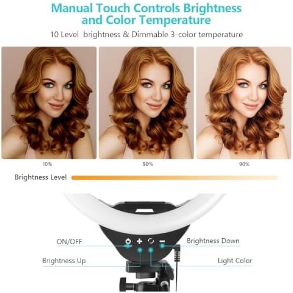 【Fully customizable portable tripod Stand】 Extending from 15.7 inches to 50 inches, our tripod can be adjusted to any height within seconds as needed, short enough to stand on tabletop, tall enough to fit your height. This compact circle light set comes handy when you do makeup, artworks, beauty & fashion live streaming, video calls and more.